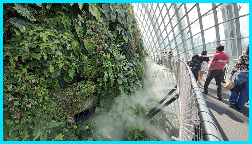 雲霧林的設計比較高,原來裏面是一個巨型的人工瀑布,遊客可以上去植物山的頂層慢慢向下參觀,個人覺得雲霧林比花穹更值得去,當然花穹都值得參觀,但雲霧林更具特色。